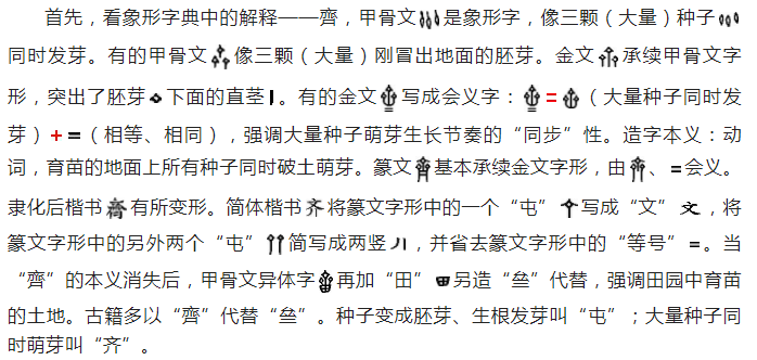 先看“齐”字的流变过程: