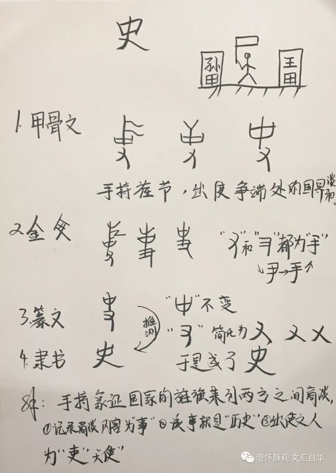 1.2 文明的特征。文明的特征无数小特征组成的集合,这个集合是由使人类脱离野蛮状态的所有社会行为和自然行为构成的,笔者窃以为比较重要的是:交流的语言和文字,规范社会运转的道德或者法律,居住的城邦或国家,提高社会效率的工具等。比如:语言和文字。语言让人类可以在视力不及的情况下快速沟通和交流,随着语言的标准化,人类沟通的效率就越来越高。文字则是文明的重大特征,没有文字不是不能够传承文明,口口相传在云南萨满文化中是存在的,但是没有文字让文明很难标准化流传是一个事实。所以,文字和语言是文明的入门级特征。本文以“史”这个字的演变为一个例子: