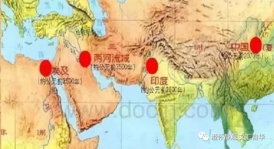 四大文明按目前考古学的发现,先后顺序应该是古巴比伦文明、古埃及文明、古印度文明和中华文明。请注意笔者的措辞,前三个文明都有一个“古”字,用来区别其同现代国家的不同,因为滋生这些文明的大地上已经没有了这些文明的传承。