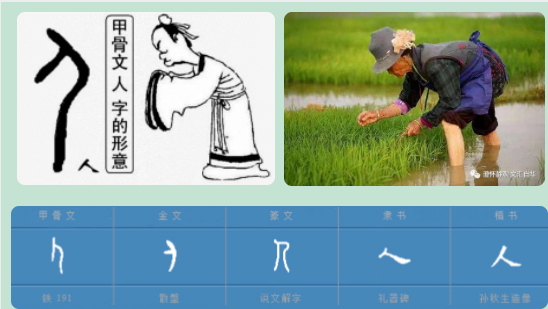 汉字到底是怎么来的呢?孙叔叔给孩子们分享了两个汉字“人”和“子”的来源。原来甲骨文中汉字的“人”像一个弯腰的士大夫,像一个面朝黄土背朝天的农民伯伯;而汉字“子”像一个襁褓中的小宝宝,有一个小脑袋和两只伸出的小手。同学在猜字中发现,原来我们的汉字这么有趣呀!