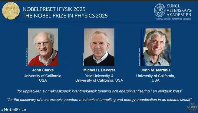 去年(2025年)诺贝尔物理学奖授予了三位科学家,他们是师生关系(约翰·克拉克、米歇尔·德沃雷和约翰·马丁尼斯),表彰他们在量子研究上的贡献
