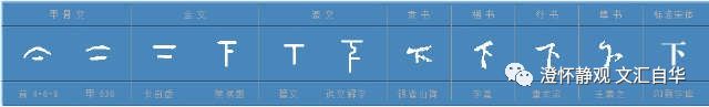 其次,到了金文时代,大家也发现参照物(长线)中的横线和曲线不容易标准化,就都写成横线了。但麻烦是容易混淆,所以为了更好的区分,加入了指示性的竖线,这样上下在应用层面算是真正的完成了符号区别。