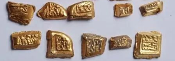 后来秦灭六国而大一统,于是秦国的“环钱”成为了整个秦朝域内的法定货币,天圆地方的铜钱一直延续到民国,可见其稳定性之高。当然,“货币天然是金银”,黄金一直在货币史上扮演重要角色,战国时期楚国已大量使用黄金类的——郢爰。如下图: