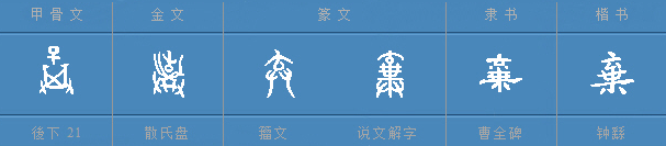,像婴儿在母亲腹中的倒立姿态,代表新生婴儿。篆文和简帛时期的文字有的省略掉箕筐的符号,有的则将箕筐做了变体,如下:
