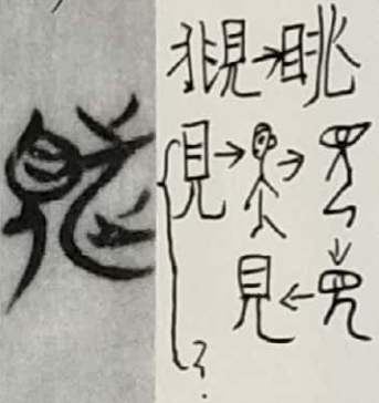 本字暂以“”字定之。《説文解字》曰:“覜,諸矦三年大相聘曰頫。覜,視也。从見,兆聲”。即:诸侯每隔三年进行大型人才互访交流。覜,就是看。该字在此做何解,暂不确定,但应与“目”有关联。