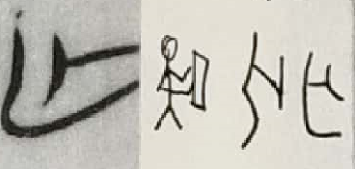 甲骨文像手张开以抓握,字形如下: