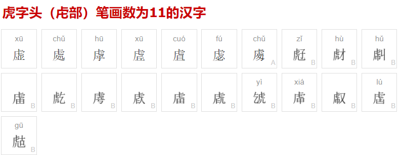(非“几”)+口”,两者有所区别,但笔画均为11画,但字典中虍字头11画汉字中未现此字。