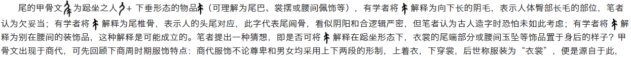 尾的篆文承续了金文字形,但有所变化,即将跽坐的“人”写为“尸”