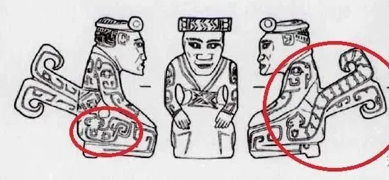 在跽坐的条件下,宽大裳衣的尾端(或系于腰间的玉佩、玉坠等饰品)难免会落在身体后侧,以此用来表示尾部则相对合情合理。我们通过妇好墓出土的商代玉坐人俑回顾下跽坐的形态,如下图: