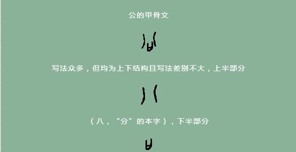之形态,像古人胡须(八、分)和嘴巴(口)的结合,有胡子代表男人,将“公母”作为一组反义词综合考虑,有须者为男子。