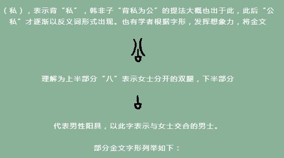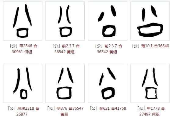 (私)的情况发生,以强调与“私”相反。故所谓公私分明中的“公私”二字,至少在甲骨文时期,并非以“厶”字为区别。公私二字流变如下:公: