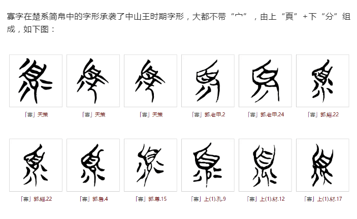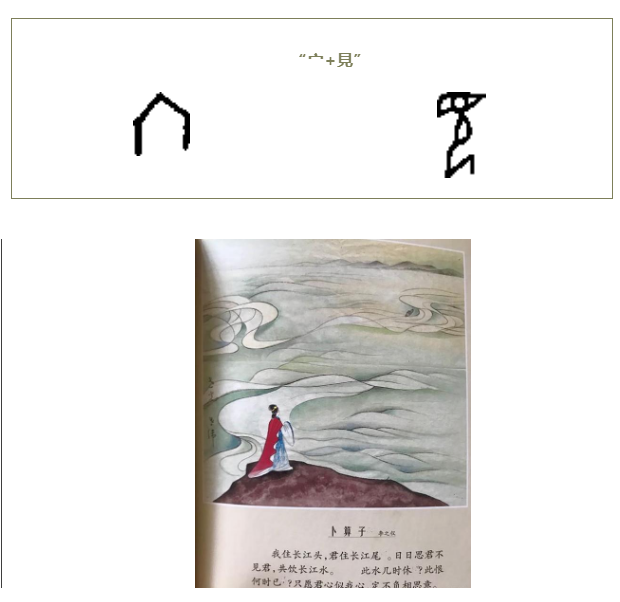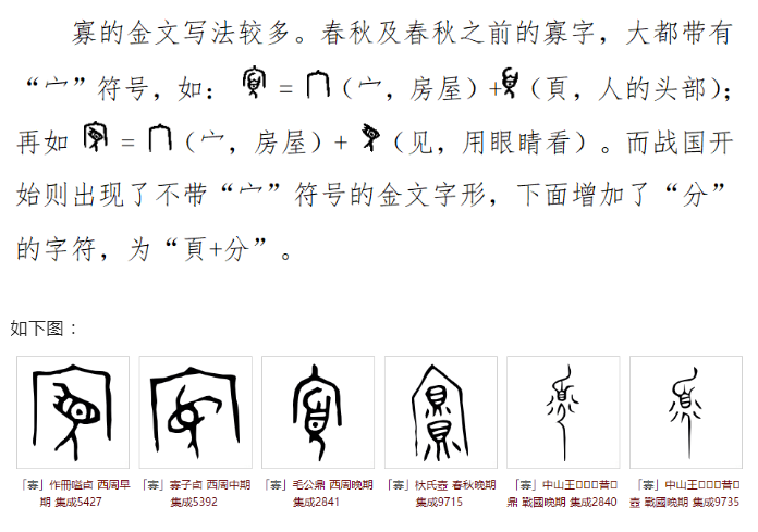 寡的甲骨文考古中暂未发掘,推测应为“宀+見”(下图)的组合,表示屋子里的人翘首以盼心中挂念之人前来,笔者认为挂念的可能是挚友、也可能是恋人,挂念的人没能来,心中难免有孤独、怅然所失的情感产生,缺少心灵共鸣友人的人往往就像尼采那样孤独,身边越繁华,自己越痛苦。后来该字指示的范围越来越小,特指妇人挂念自己的夫君,而夫君在外征战或意外离世,此妇人就成了寡妇。