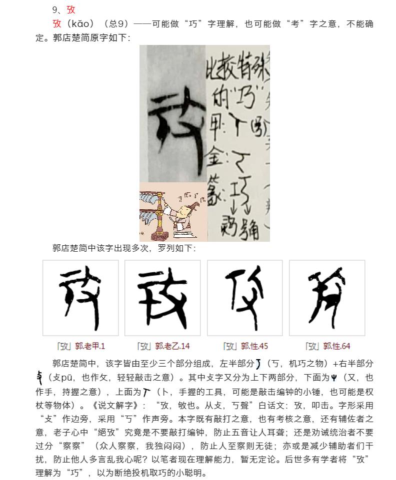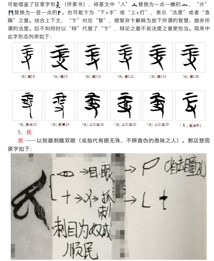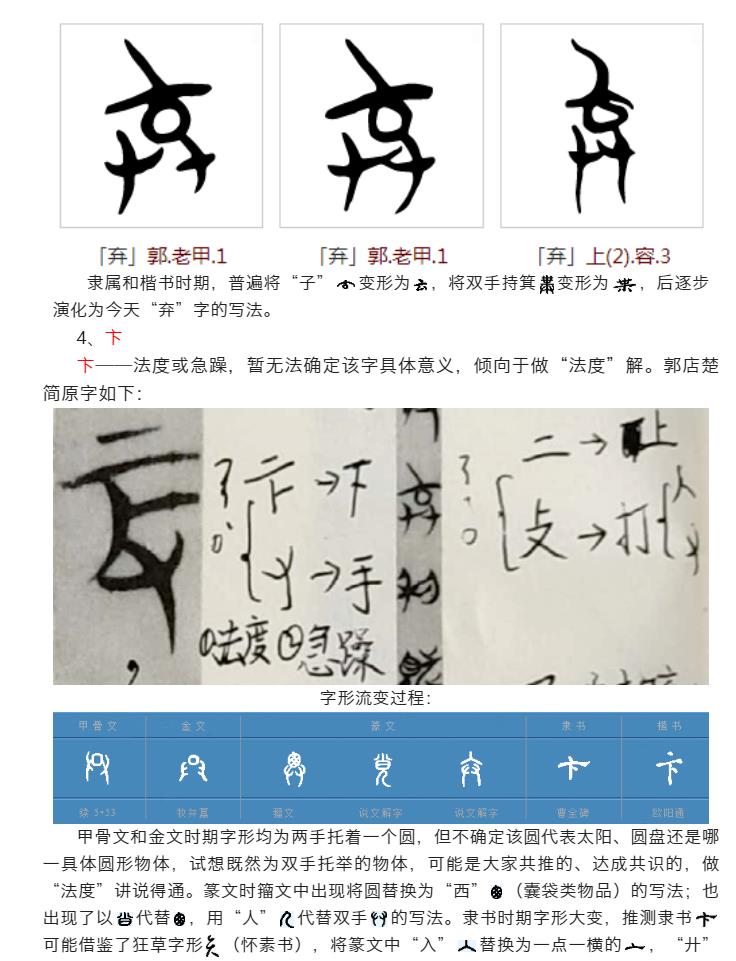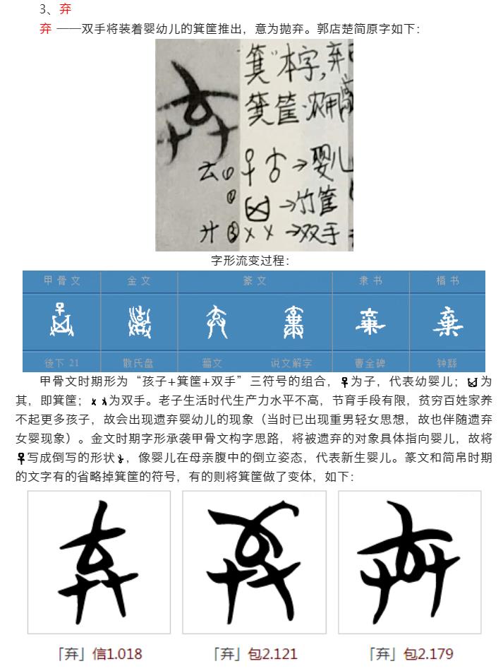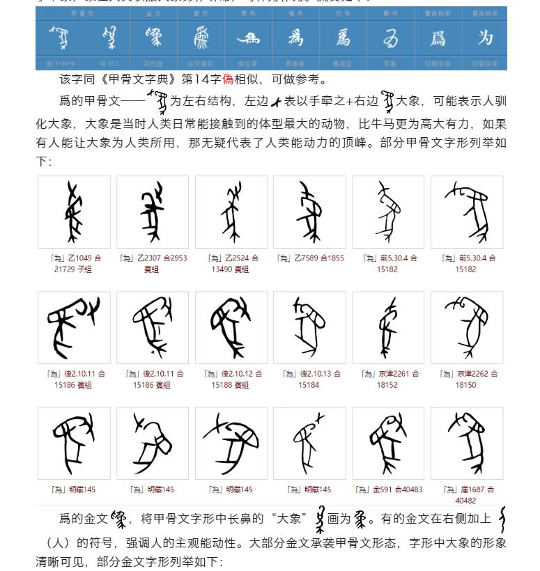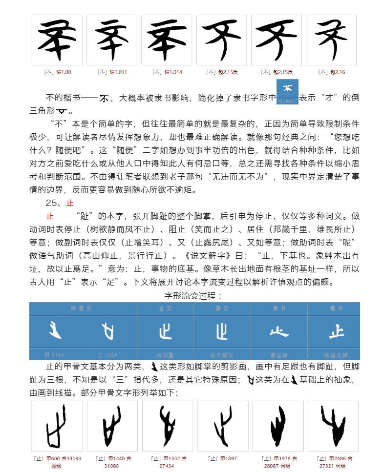 本字典以郭店楚简《老子》中文字先后顺序为呈现逻辑,研述甲骨文至简体字的文字衍化顺序,期待于其过程中体味老子思想的本质和精华。需要指出的是,对甲骨文的理解是一个不断深化和升华的过程,故本字典也将不断鼎故革新,在否定之否定中扬弃和进步。
