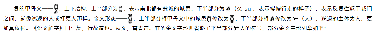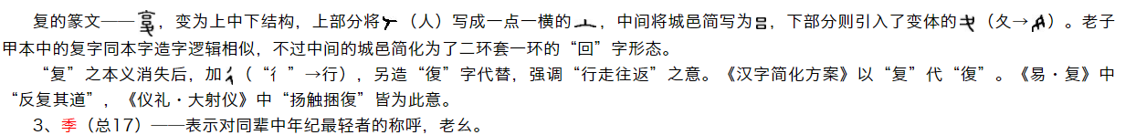 (2)总第16)——同“复”,原意为往返于城门之间,表示回去、重返。郭店楚简老子甲本中以“复”字呈现: