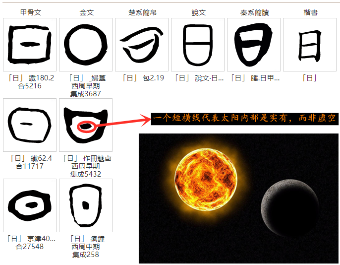 象形字也属独体造字法,是具象临摹的一种朴素表达,通常用点、线等符号造型直接还原要表达物体的外形特征,以许慎之言是“画成其物,随体诘诎,日月是也”,其中“日”字如下:
